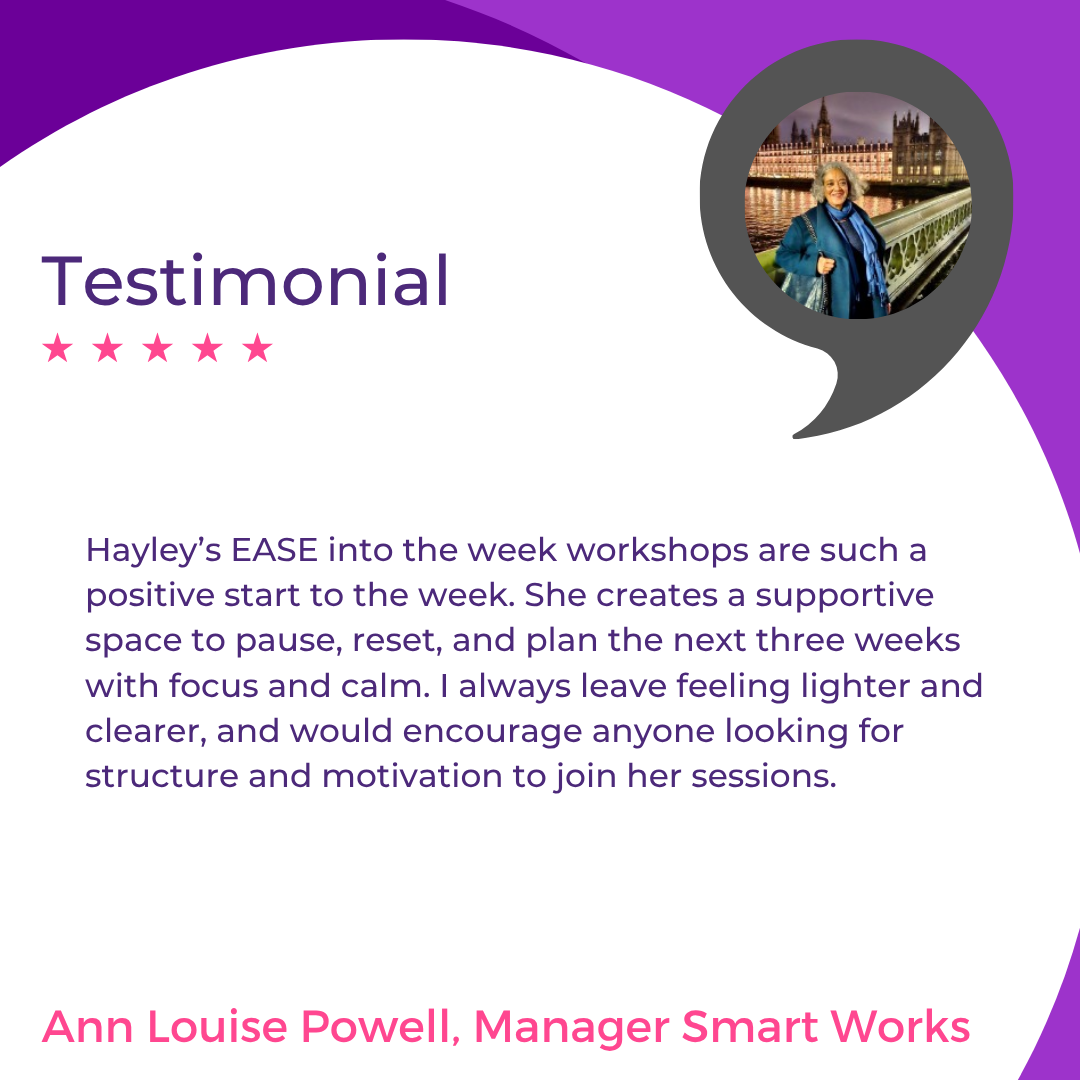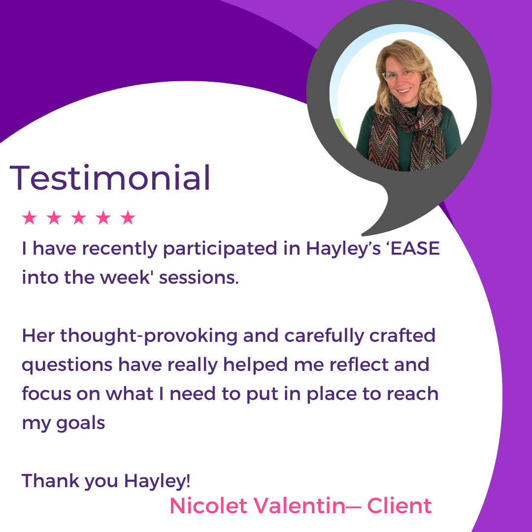 My 'EASE into the week' session helps you to plan your week to stop you feeling overwhelmed.